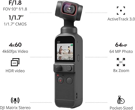 DJI Pocket 2 Creator Combo, 3 Axis Gimbal Stabilizer with 4K Camera, 1/1.7″ CMOS, 64MP Photo, Face Tracking, YouTube, Vlog, Portable Video Camera for Android and iPhone, Black