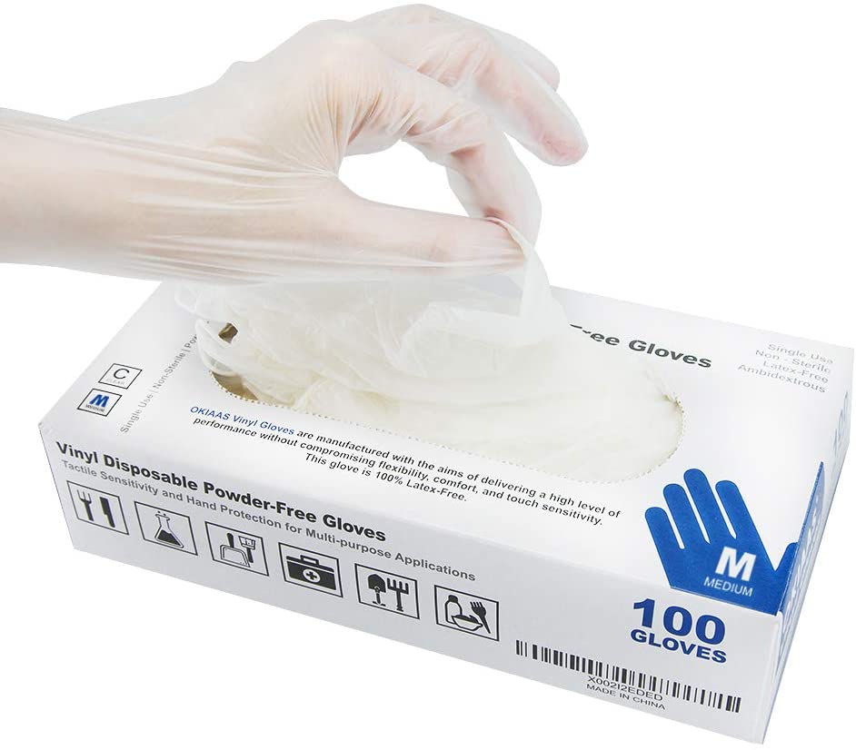 Disposable Gloves M| Latex and Powder-Free Clear Vinyl Gloves for Household
