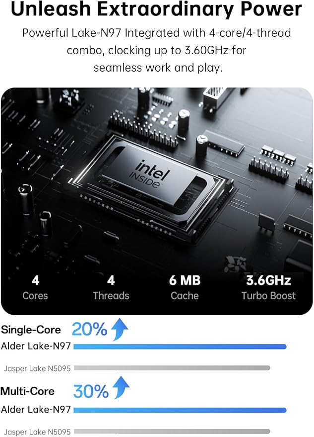 • 【POWERFUL PERFORMANCE】Experience lightning-fast processing speeds with ACEMAGIC AX17’s 12th generation Alder Lake N97 processor, 16GB DDR4 RAM, and 512GB SSD. Its superior performance outshines rivals like Celeron N5095 and Pentium N5030, making it ideal for intense multitasking.