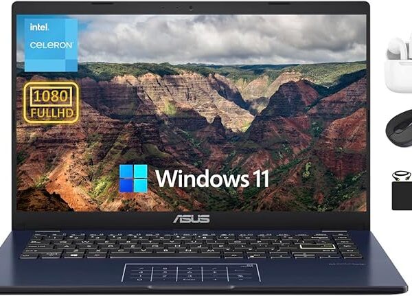 ASUS 14” FHD Portable Go Laptop 2024 Flagship, Dual-Core Intel Celeron N4500 Processor, 4GB RAM, 128GB Storage (64GB eMMC+64GB SD), WiFi, 720P Webcam, 10+ Hrs Battery, Windows 11S +HubxcelAccessory