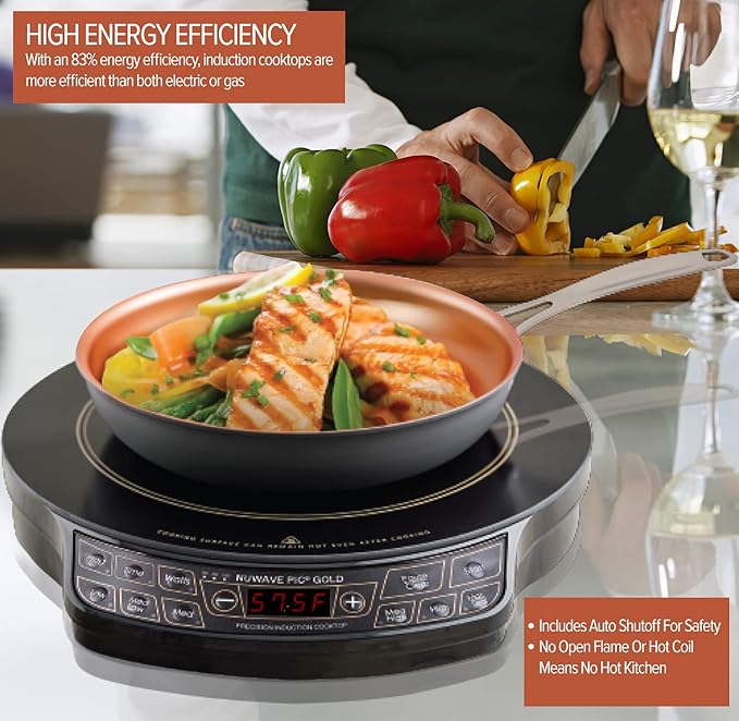 HomeHome & Kithen Nuwave Gold Precision Induction Cooktop, Portable, Powerful with Large 8” Heating Coil,100°F to 575°F, 3 Wattage Settings, 12” Heat-Resistant Cooking Surface