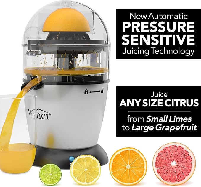 HomeHome & Kithen Vinci Hands Free Electric Citrus Juicer, 1-Button Juicer Machine, Orange Lime Grapefruit Lemon Squeezer, Easy to Clean Orange Juicer Squeezer, Black/Stainless Steel